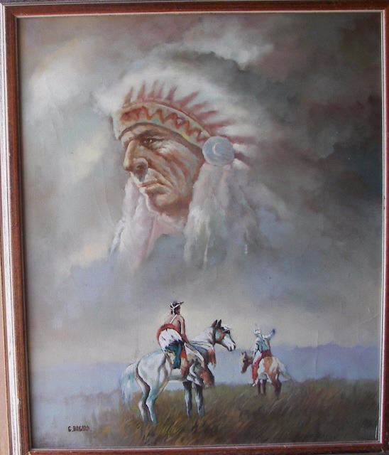 Bogard paints Western scenes in the natural outdoors. Vtg Native American Indian Oil Painting Canvas Turquoise Jewelry signed Shawn. The artists first artwork to be offered at auction was American Indians on horses at Leighton Galleries Inc.